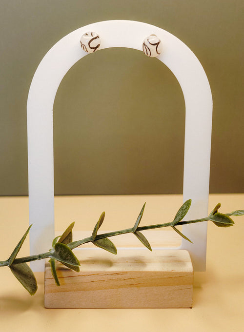 De oorbellen zijn gemaakt van polymeerklei, een zeer licht en comfortabel materiaal. Elk paar wordt in kleine oplages en met veel handwerk gemaakt. Daardoor kunnen de oorbellen onderling licht verschillen en draag je altijd een uniek paar met een eigen karakter. Is een ontwerp uitverkocht, dan komt het niet meer terug in de webshop.